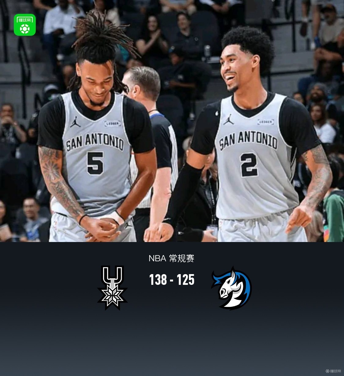 马刺138-125轻取独行侠,卡斯尔19中15轰40+12+12,文班亚马16+11