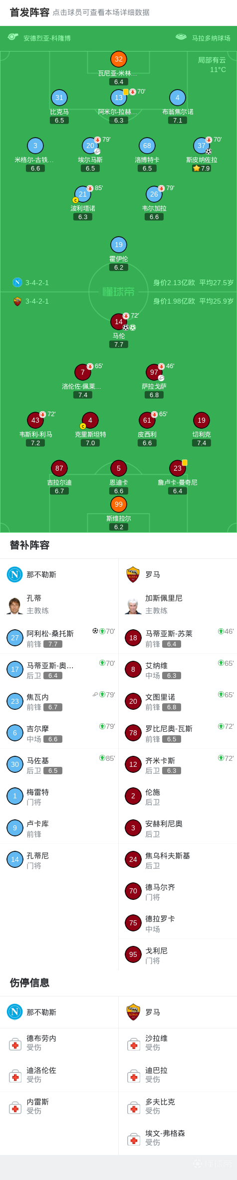 那不勒斯2-2罗马,马伦双响,斯皮纳佐拉破旧主,阿利松破门