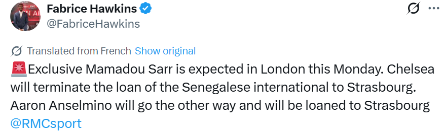 RMC名记:马马杜-萨尔预计今天返回伦敦,回归切尔西