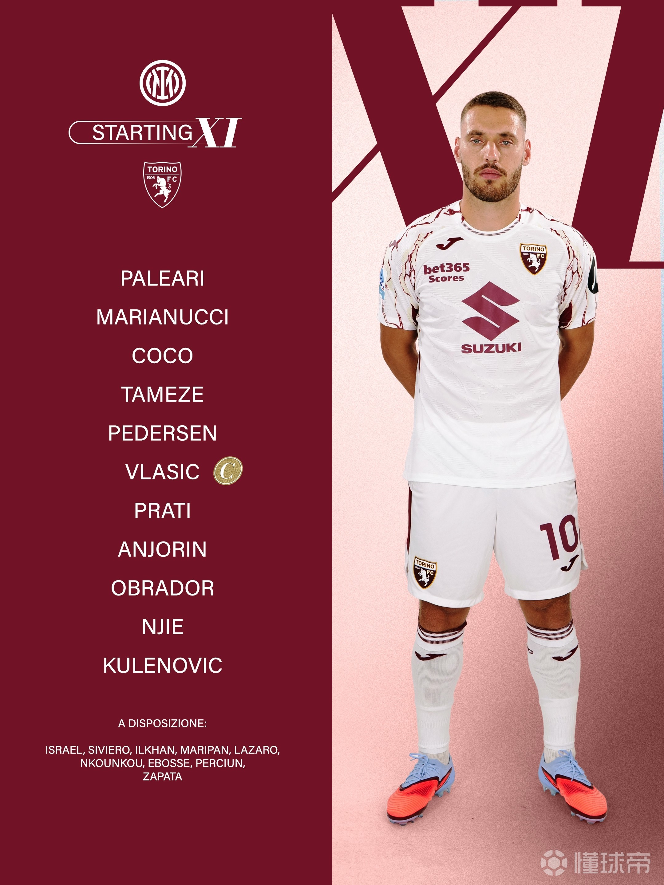 都灵首发:1-帕莱里亚、61-塔梅泽、23-萨乌尔-科科、35-马里亚努奇、16-彼得森、14-安乔林、4-普拉蒂、33-奥夫拉多尔、10-弗拉希奇、92-恩吉、17-库伦诺维奇
