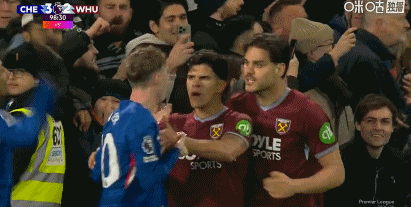 英超第24轮,切尔西vs西汉姆联,双方补时最后时刻爆发冲突!