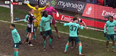 第90+5分钟,谁的门?格林斯比门将史密斯压到狼队禁区,和约翰斯通对抗