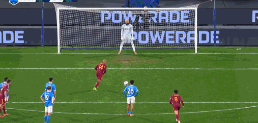 第71分钟,韦斯利造点,马伦主罚命中,罗马2-1