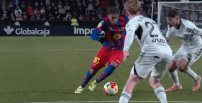 第39分钟,德容前场断球后助攻亚马尔兜射破门,巴萨1-0!