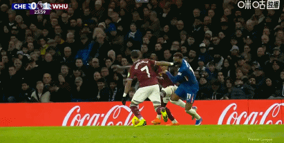 北京时间2月1日英格兰足球顶级联赛联赛第24轮,切尔西主场对阵西汉姆联。上半场,鲍恩边路传中,皮球直接转进球门,随后,万-比萨卡横传,萨默维尔跟上抽射破门。半场战罢,场上比分切尔西 0-2 西汉姆联。