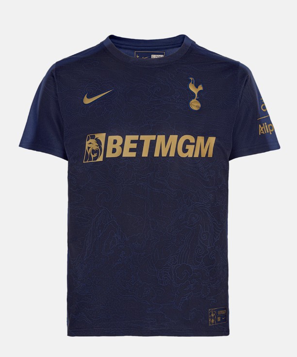 球衣背面印有热刺队徽的大幅轮廓,而赞助商的标志则以醒目的金色出现在球衣正面。球衣设计中巧妙地隐藏了四个致敬俱乐部历史的“彩蛋”,包括热刺队队徽轮廓、“N17”字样、欧洲冠军奖杯以及一个足球——代表俱乐部所在的北伦敦邮政编码,球衣上还印有二维码,扫描后可观看独家视频内容。